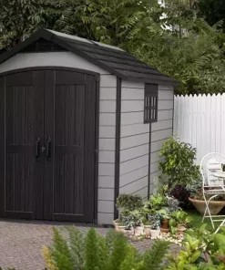 A perfect blend of classic style and practical performance, the Keter Premier 7.5′ x 9′ Shed offers a premium outdoor storage solution for your garden tools, equipment, and accessories.